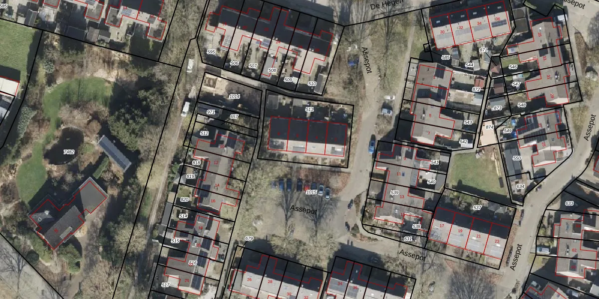 Het perceel waarop Assepot 6 staat heeft een oppervlakte van 642 m². Dit is een groot perceel. De perceeloppervlakte wordt geregistreerd door het Kadaster. Gedetailleerde informatie over de maten van dit perceel kunt u vinden in het rapport Kadastrale kaart met maatvoering van Assepot 6.