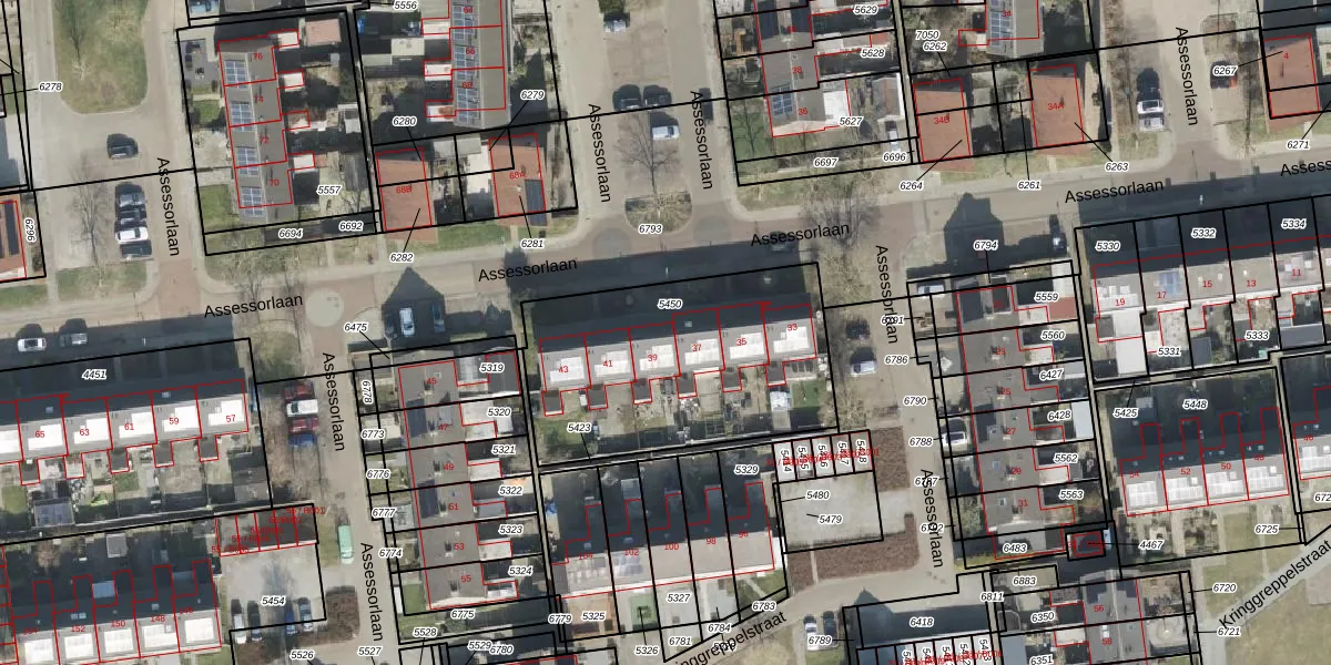 Assessorlaan 39 is gelegen op kadastraal perceel OTW02C5450. Deze kadastrale aanduiding is uniek en wordt gebruikt door het Kadaster om eigendomsrechten en andere zakelijke rechten vast te leggen. Het perceel maakt onderdeel uit van de kadastrale gemeente Oosterwolde.