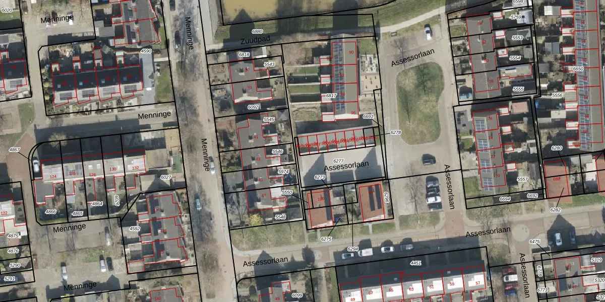 Assessorlaan 96-B008 is gelegen op kadastraal perceel OTW02C6817. Deze kadastrale aanduiding is uniek en wordt gebruikt door het Kadaster om eigendomsrechten en andere zakelijke rechten vast te leggen. Het perceel maakt onderdeel uit van de kadastrale gemeente Oosterwolde.