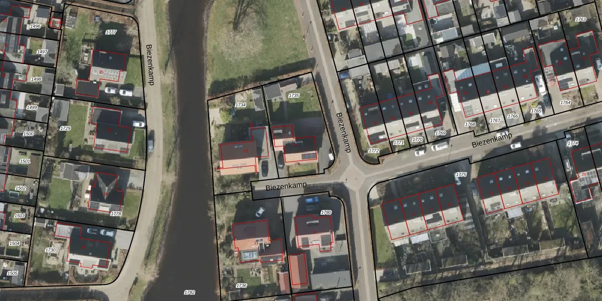 Biezenkamp 15 is gelegen op kadastraal perceel OTW02D1735. Deze kadastrale aanduiding is uniek en wordt gebruikt door het Kadaster om eigendomsrechten en andere zakelijke rechten vast te leggen. Het perceel maakt onderdeel uit van de kadastrale gemeente Oosterwolde.