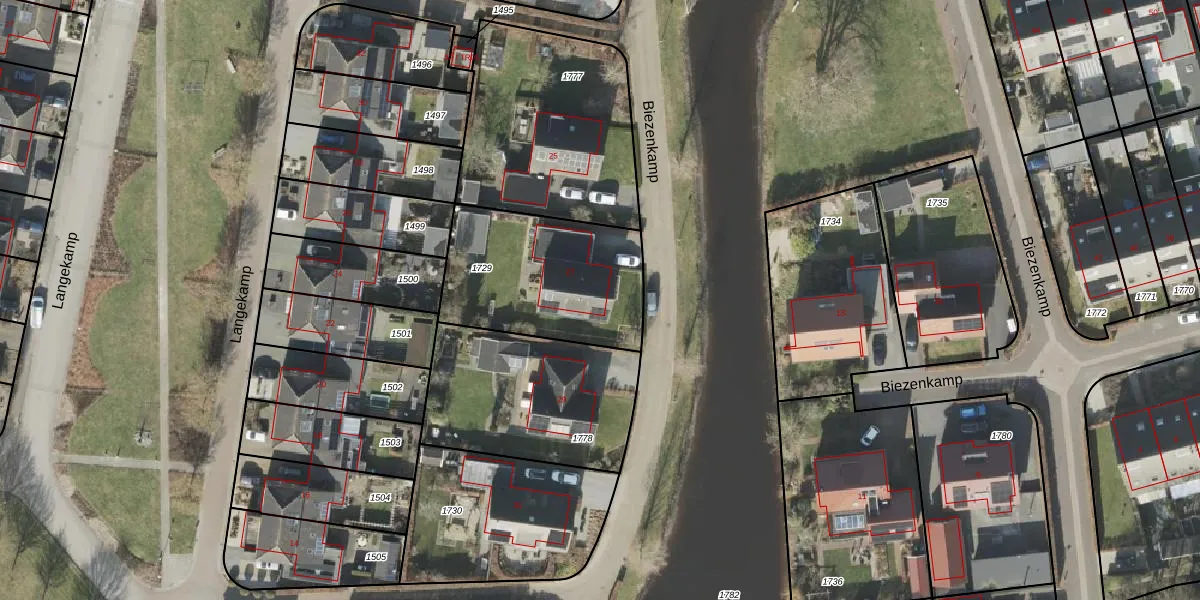 Gebruik de zoekbalk of klik op een perceel voor informatie over de adressen binnen dit perceel.