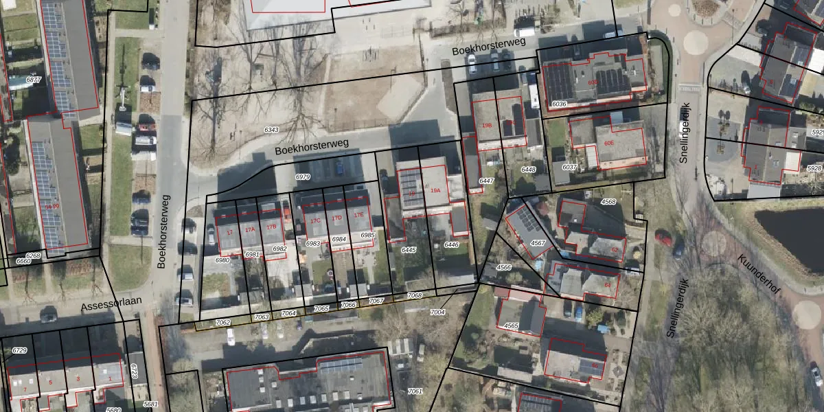 Boekhorsterweg 19 is gelegen op kadastraal perceel OTW02C6445. Deze kadastrale aanduiding is uniek en wordt gebruikt door het Kadaster om eigendomsrechten en andere zakelijke rechten vast te leggen. Het perceel maakt onderdeel uit van de kadastrale gemeente Oosterwolde.