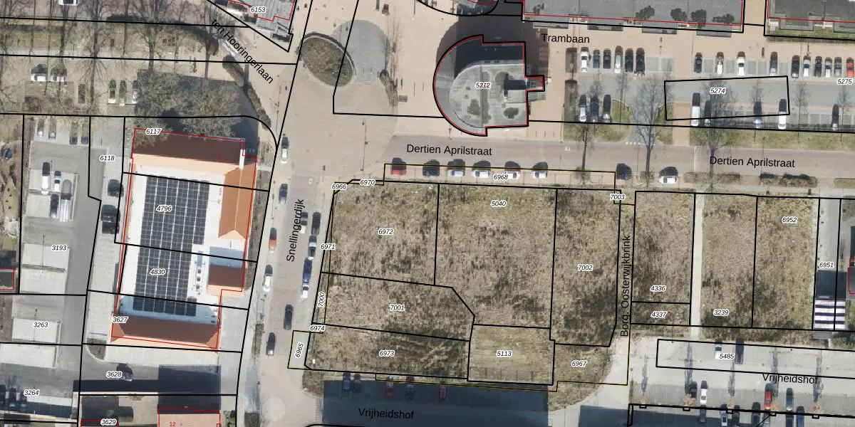 Het perceel waarop het adres ligt is OTW02-C-6972. De afkorting 'OTW02' staat voor kadastrale gemeente Oosterwolde. Het perceel is kleiner dan gemiddeld in Oosterwolde. Het perceel is 550 m² groot, terwijl het gemiddelde ligt op 7587,42 m². Het grootste perceel in de kadastrale gemeente is 93,2 ha. Het kleinste perceel heeft een oppervlakte van 0 m². Op het perceel liggen in totaal 7 adressen. In de Basisregistratie Kadaster (BRK) werden de grenzen van het perceel geregistreerd op 10-06-2022.
