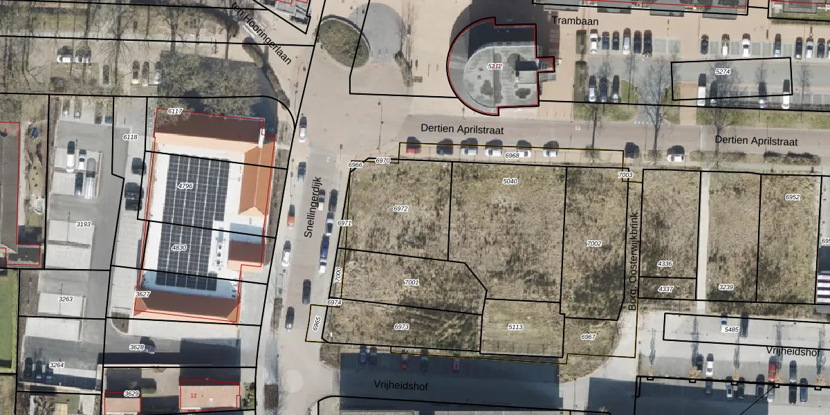 Het perceel waarop het adres ligt is OTW02-C-6972. De afkorting 'OTW02' staat voor kadastrale gemeente Oosterwolde. Het perceel is kleiner dan gemiddeld in Oosterwolde. Het perceel is 550 m² groot, terwijl het gemiddelde ligt op 7587,42 m². Het grootste perceel in de kadastrale gemeente is 93,2 ha. Het kleinste perceel heeft een oppervlakte van 0 m². Er zijn 7 adressen aanwezig op het perceel. De huidige grenzen van het perceel zijn digitaal in de Basisregistratie Kadaster (BRK) geregistreerd op 10-06-2022.