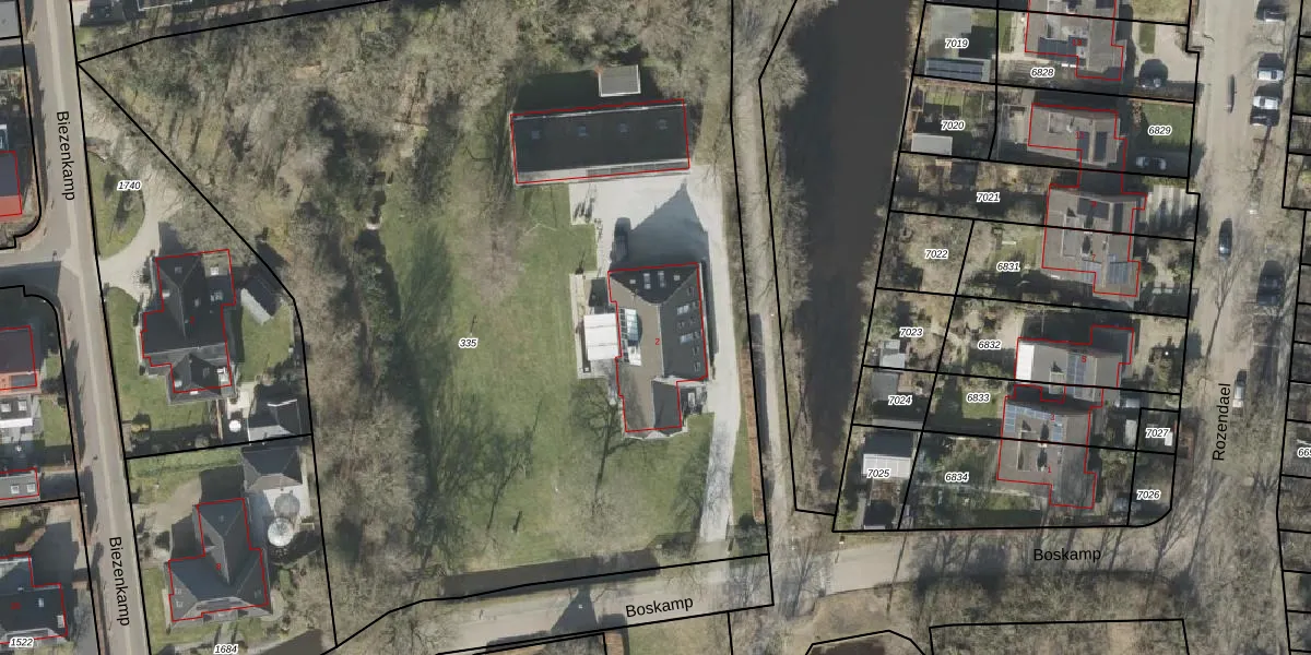 Het perceel waarop Boskamp 2 staat heeft een oppervlakte van 6970 m². Dit is een zeer groot perceel. De perceeloppervlakte wordt geregistreerd door het Kadaster. Gedetailleerde informatie over de maten van dit perceel kunt u vinden in het rapport Kadastrale kaart met maatvoering van Boskamp 2.