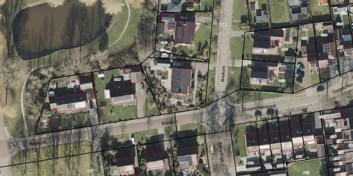Gebruik de zoekbalk of klik op een perceel voor informatie over de adressen binnen dit perceel.