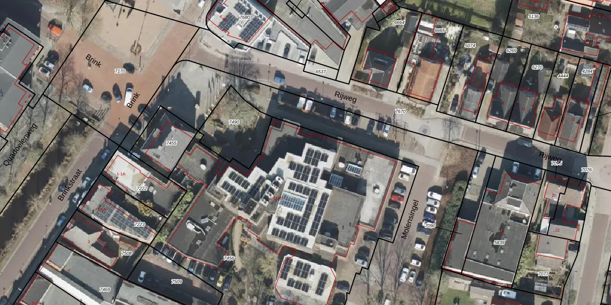 Brink 1-106 is gelegen op kadastraal perceel OTW02A7456. Deze kadastrale aanduiding is uniek en wordt gebruikt door het Kadaster om eigendomsrechten en andere zakelijke rechten vast te leggen. Het perceel maakt onderdeel uit van de kadastrale gemeente Oosterwolde.