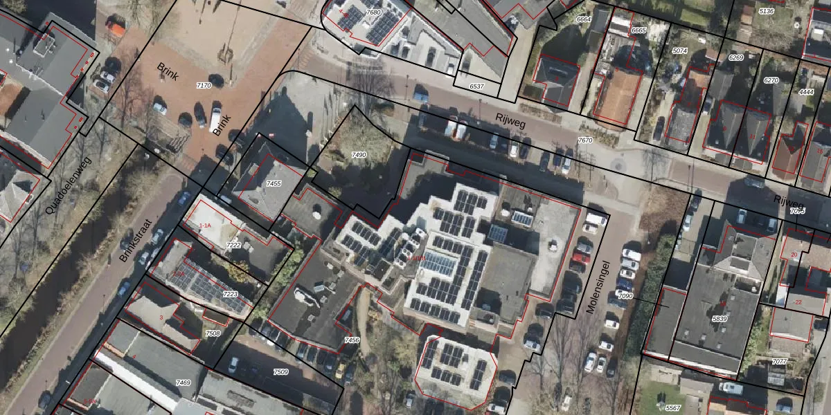 Brink 1-108 is gelegen op kadastraal perceel OTW02A7456. Deze kadastrale aanduiding is uniek en wordt gebruikt door het Kadaster om eigendomsrechten en andere zakelijke rechten vast te leggen. Het perceel maakt onderdeel uit van de kadastrale gemeente Oosterwolde.