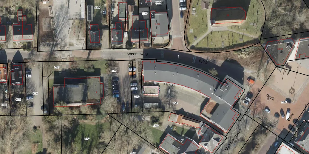 Het perceel waarop Brink 41 staat heeft een oppervlakte van 2062 m². Dit is een zeer groot perceel. De perceeloppervlakte wordt geregistreerd door het Kadaster. Gedetailleerde informatie over de maten van dit perceel kunt u vinden in het rapport Kadastrale kaart met maatvoering van Brink 41.