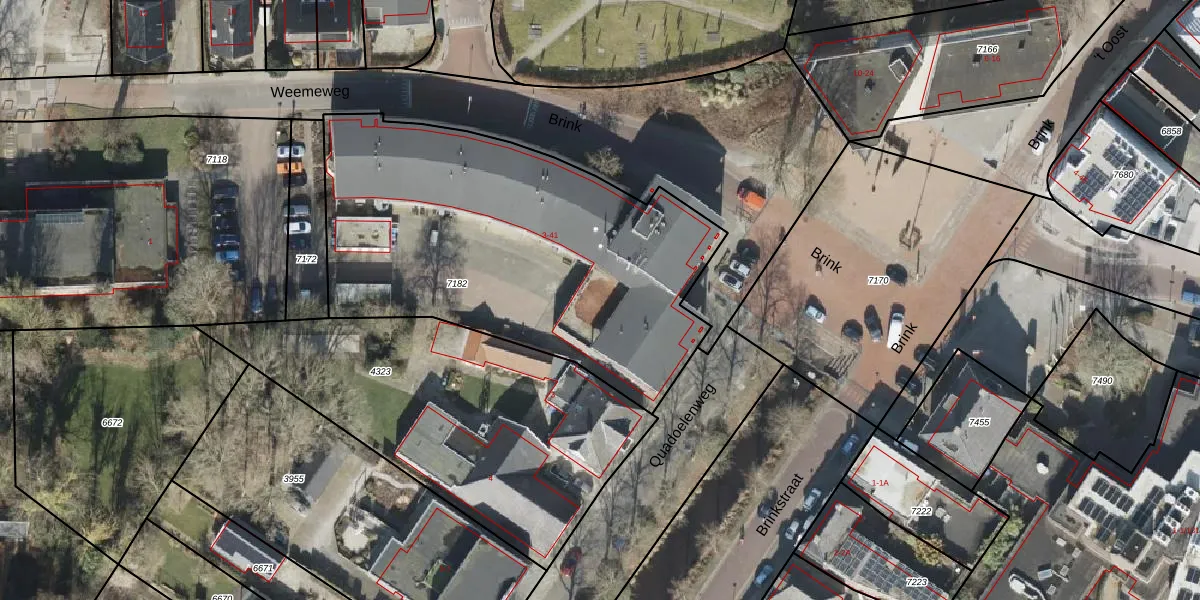 Brink 5 is gelegen op kadastraal perceel OTW02A7182. Deze kadastrale aanduiding is uniek en wordt gebruikt door het Kadaster om eigendomsrechten en andere zakelijke rechten vast te leggen. Het perceel maakt onderdeel uit van de kadastrale gemeente Oosterwolde.