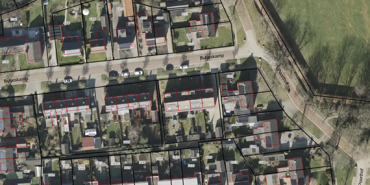 Het perceel waarop Butjeskamp 20 staat heeft een oppervlakte van 1072 m². Dit is een zeer groot perceel. De perceeloppervlakte wordt geregistreerd door het Kadaster. Gedetailleerde informatie over de maten van dit perceel kunt u vinden in het rapport Kadastrale kaart met maatvoering van Butjeskamp 20.