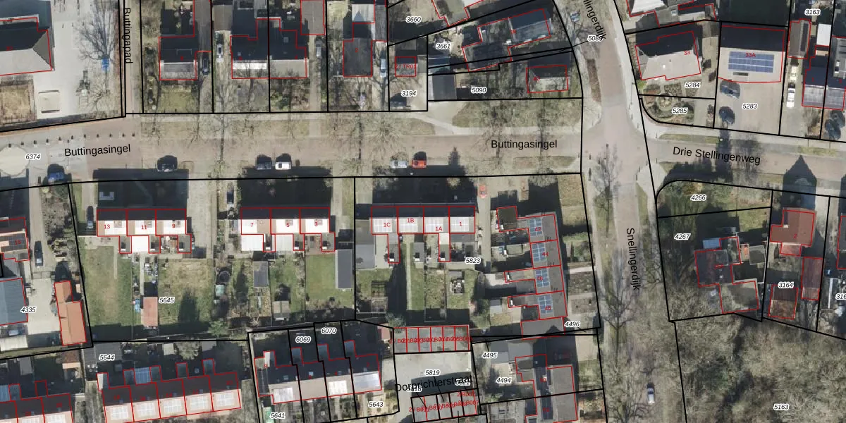 Buttingasingel 1-B is gelegen op kadastraal perceel OTW02C5823. Deze kadastrale aanduiding is uniek en wordt gebruikt door het Kadaster om eigendomsrechten en andere zakelijke rechten vast te leggen. Het perceel maakt onderdeel uit van de kadastrale gemeente Oosterwolde.