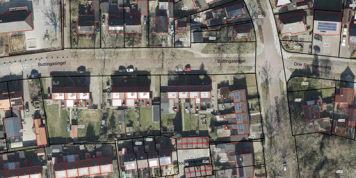 Buttingasingel 1-C is gelegen op kadastraal perceel OTW02C5823. Deze kadastrale aanduiding is uniek en wordt gebruikt door het Kadaster om eigendomsrechten en andere zakelijke rechten vast te leggen. Het perceel maakt onderdeel uit van de kadastrale gemeente Oosterwolde.