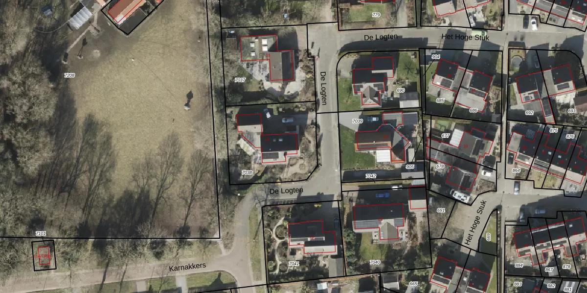 Het perceel waarop De Logten 13 staat heeft een oppervlakte van 815 m². Dit is een groot perceel. De perceeloppervlakte wordt geregistreerd door het Kadaster. Gedetailleerde informatie over de maten van dit perceel kunt u vinden in het rapport Kadastrale kaart met maatvoering van De Logten 13.