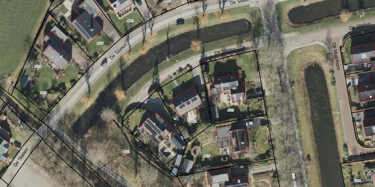 De Slatten 13 is gelegen op kadastraal perceel OTW02C4562. Deze kadastrale aanduiding is uniek en wordt gebruikt door het Kadaster om eigendomsrechten en andere zakelijke rechten vast te leggen. Het perceel maakt onderdeel uit van de kadastrale gemeente Oosterwolde.