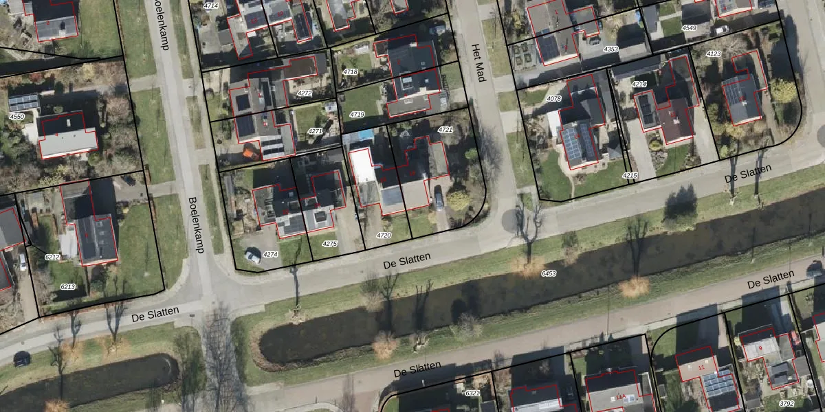 De Slatten 16 is gelegen op kadastraal perceel OTW02C4721. Deze kadastrale aanduiding is uniek en wordt gebruikt door het Kadaster om eigendomsrechten en andere zakelijke rechten vast te leggen. Het perceel maakt onderdeel uit van de kadastrale gemeente Oosterwolde.