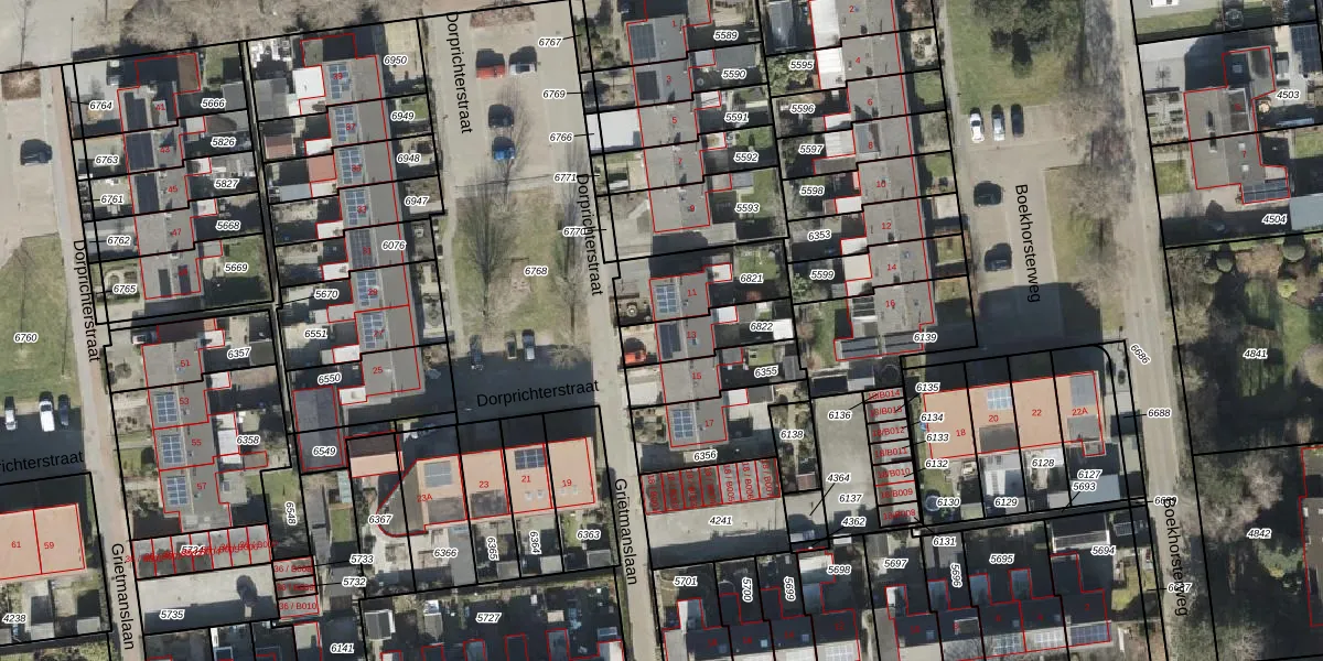 Het perceel waarop Dorprichterstraat 13 staat heeft een oppervlakte van 166 m². Dit is een middelgroot perceel. De perceeloppervlakte wordt geregistreerd door het Kadaster. Gedetailleerde informatie over de maten van dit perceel kunt u vinden in het rapport Kadastrale kaart met maatvoering van Dorprichterstraat 13.