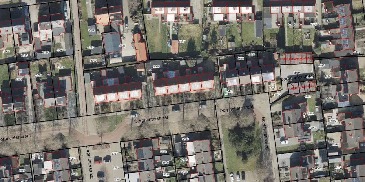 Het perceel waarop Dorprichterstraat 14 staat heeft een oppervlakte van 1814 m². Dit is een zeer groot perceel. De perceeloppervlakte wordt geregistreerd door het Kadaster. Gedetailleerde informatie over de maten van dit perceel kunt u vinden in het rapport Kadastrale kaart met maatvoering van Dorprichterstraat 14.