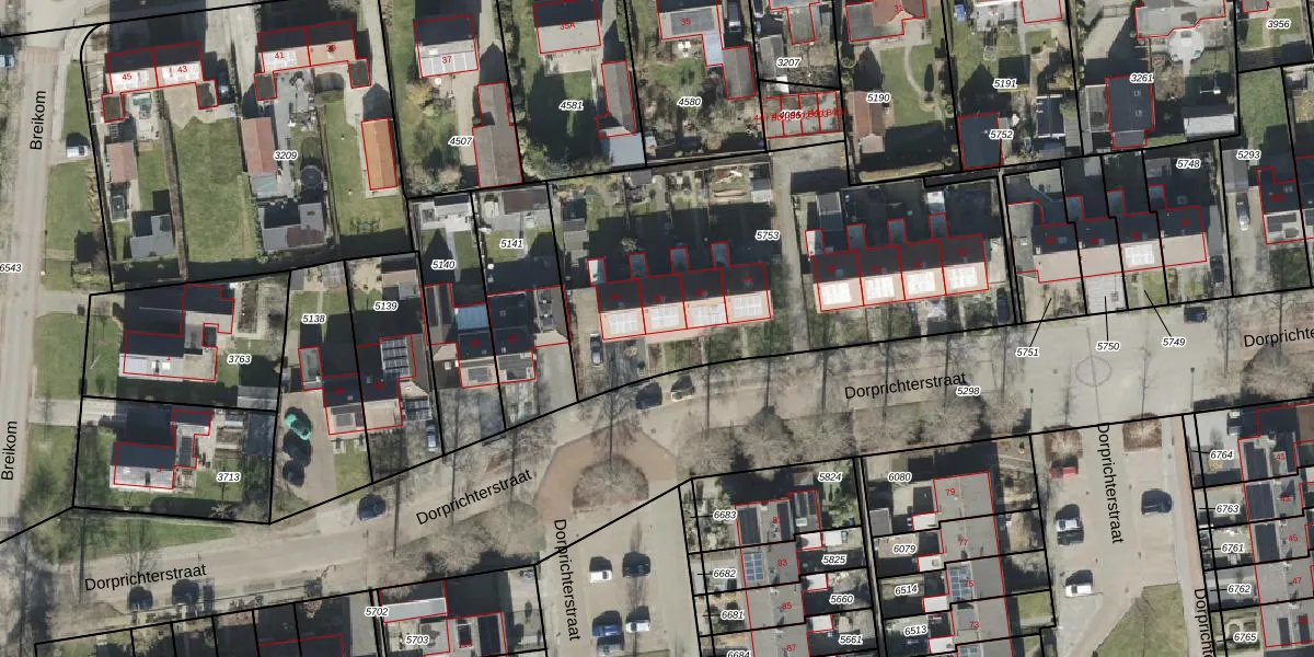 Het perceel waarop Dorprichterstraat 50 staat heeft een oppervlakte van 1915 m². Dit is een zeer groot perceel. De perceeloppervlakte wordt geregistreerd door het Kadaster. Gedetailleerde informatie over de maten van dit perceel kunt u vinden in het rapport Kadastrale kaart met maatvoering van Dorprichterstraat 50.