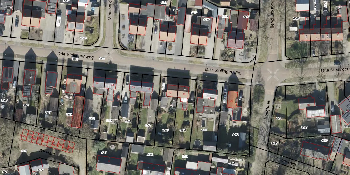 Drie Stellingenweg 20 is gelegen op kadastraal perceel OTW02C6003. Deze kadastrale aanduiding is uniek en wordt gebruikt door het Kadaster om eigendomsrechten en andere zakelijke rechten vast te leggen. Het perceel maakt onderdeel uit van de kadastrale gemeente Oosterwolde.
