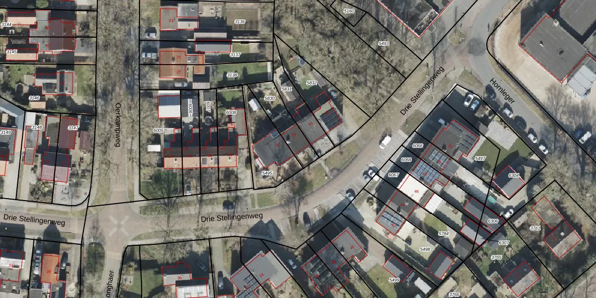Gebruik de zoekbalk of klik op een perceel voor informatie over de adressen binnen dit perceel.