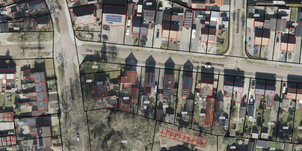 Drie Stellingenweg 4 is gelegen op kadastraal perceel OTW02C3165. Deze kadastrale aanduiding is uniek en wordt gebruikt door het Kadaster om eigendomsrechten en andere zakelijke rechten vast te leggen. Het perceel maakt onderdeel uit van de kadastrale gemeente Oosterwolde.