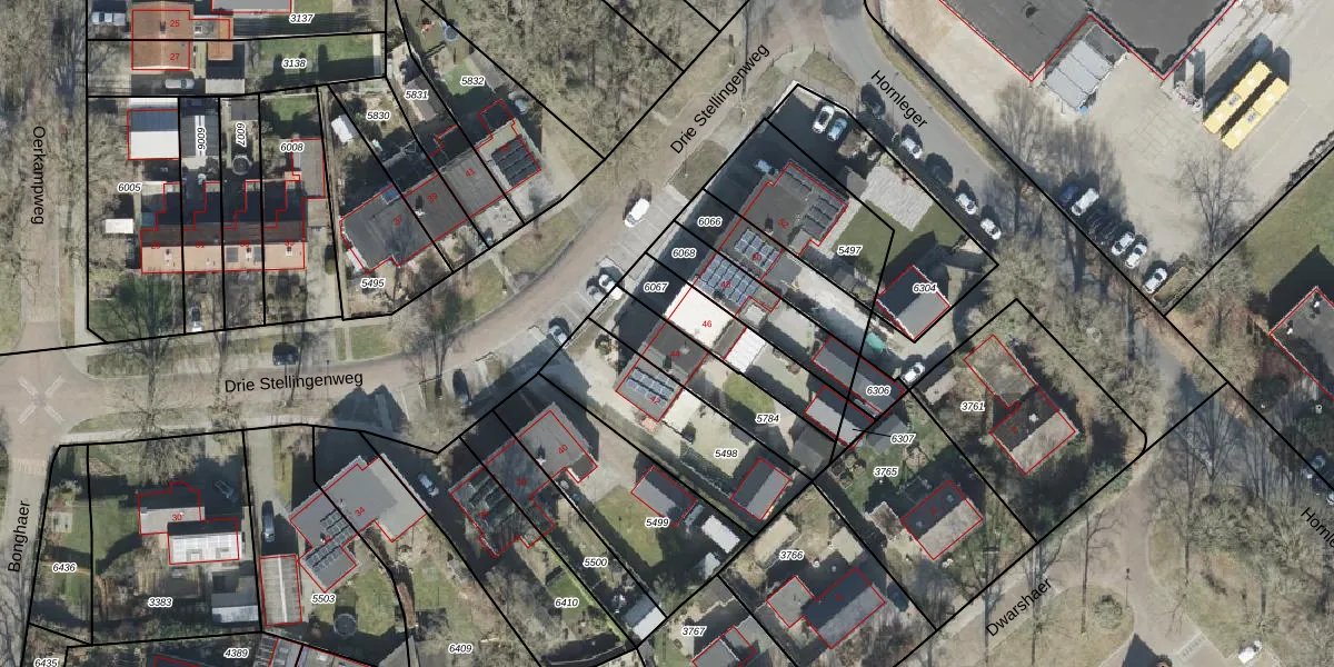 Gebruik de zoekbalk of klik op een perceel voor informatie over de adressen binnen dit perceel.