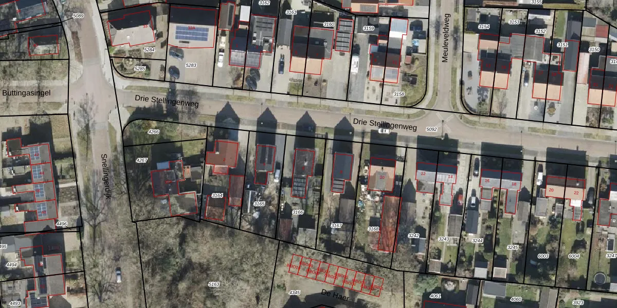 Drie Stellingenweg 6 is gelegen op kadastraal perceel OTW02C3166. Deze kadastrale aanduiding is uniek en wordt gebruikt door het Kadaster om eigendomsrechten en andere zakelijke rechten vast te leggen. Het perceel maakt onderdeel uit van de kadastrale gemeente Oosterwolde.