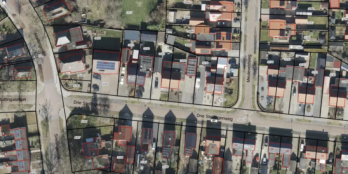 Drie Stellingenweg 7 is gelegen op kadastraal perceel OTW02C3160. Deze kadastrale aanduiding is uniek en wordt gebruikt door het Kadaster om eigendomsrechten en andere zakelijke rechten vast te leggen. Het perceel maakt onderdeel uit van de kadastrale gemeente Oosterwolde.