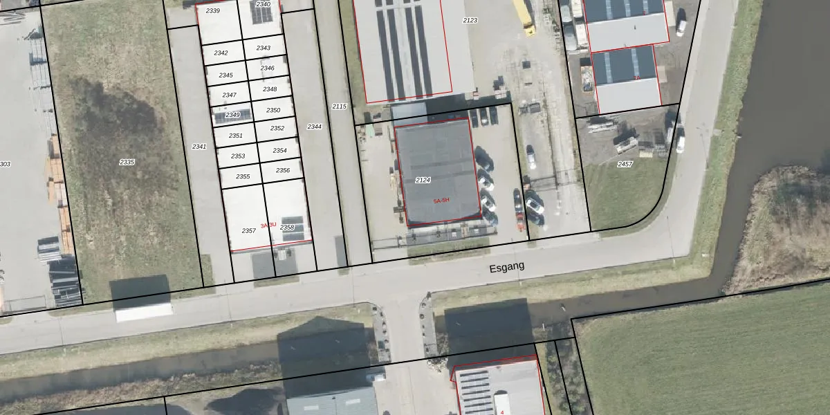 Esgang 5-A is gelegen op kadastraal perceel OTW02D2124. Deze kadastrale aanduiding is uniek en wordt gebruikt door het Kadaster om eigendomsrechten en andere zakelijke rechten vast te leggen. Het perceel maakt onderdeel uit van de kadastrale gemeente Oosterwolde.