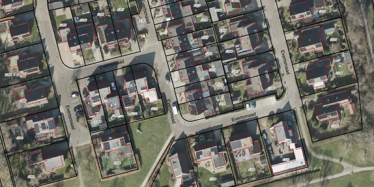 Het perceel waarop Evertsmaad 16 staat heeft een oppervlakte van 254 m². Dit is een middelgroot perceel. De perceeloppervlakte wordt geregistreerd door het Kadaster. Gedetailleerde informatie over de maten van dit perceel kunt u vinden in het rapport Kadastrale kaart met maatvoering van Evertsmaad 16.