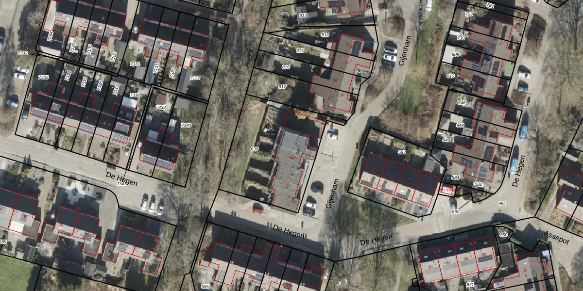 Het perceel waarop Gijenham 11 staat heeft een oppervlakte van 1015 m². Dit is een zeer groot perceel. De perceeloppervlakte wordt geregistreerd door het Kadaster. Gedetailleerde informatie over de maten van dit perceel kunt u vinden in het rapport Kadastrale kaart met maatvoering van Gijenham 11.