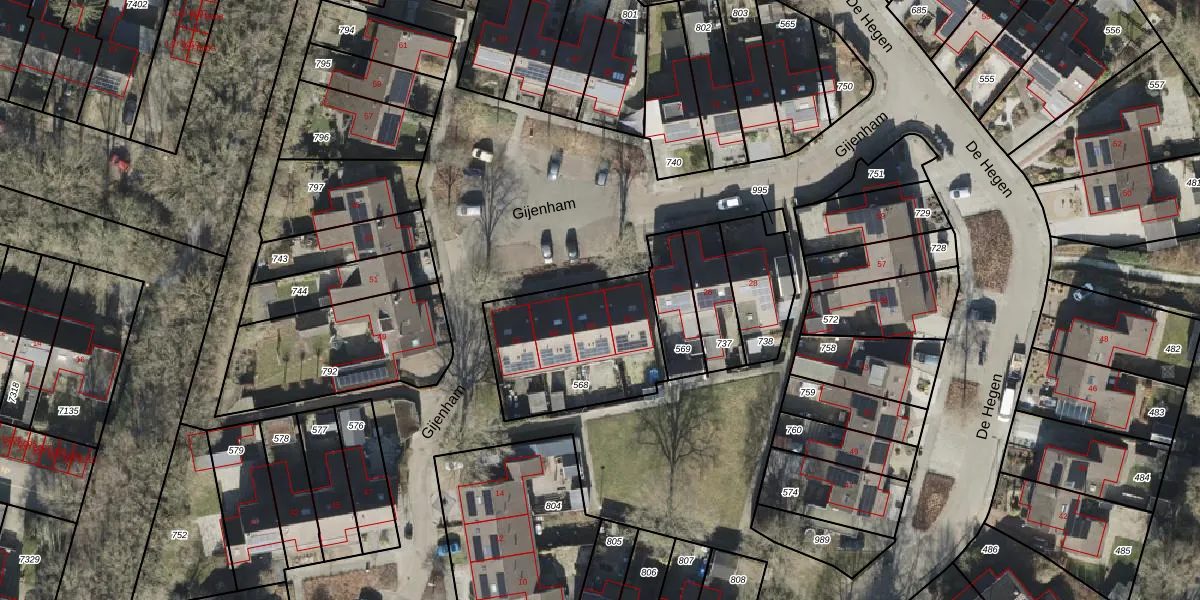Het perceel waarop Gijenham 20 staat heeft een oppervlakte van 562 m². Dit is een groot perceel. De perceeloppervlakte wordt geregistreerd door het Kadaster. Gedetailleerde informatie over de maten van dit perceel kunt u vinden in het rapport Kadastrale kaart met maatvoering van Gijenham 20.