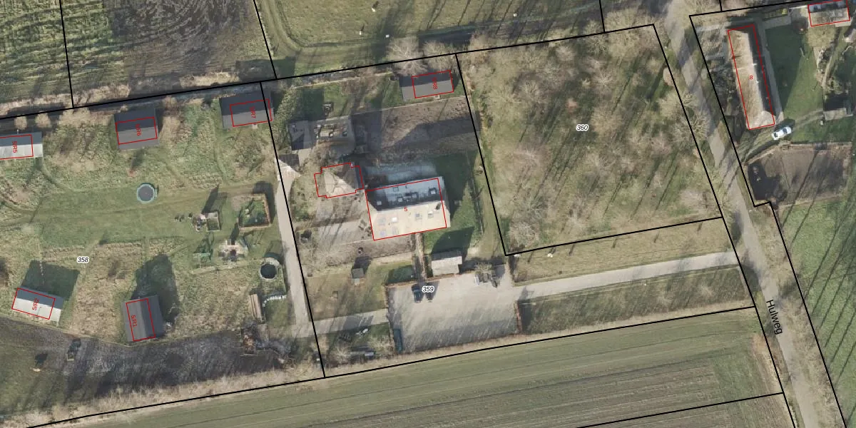 Hulweg 5 is gelegen op kadastraal perceel ODB01AC359. Deze kadastrale aanduiding is uniek en wordt gebruikt door het Kadaster om eigendomsrechten en andere zakelijke rechten vast te leggen. Het perceel maakt onderdeel uit van de kadastrale gemeente Oldebroek.