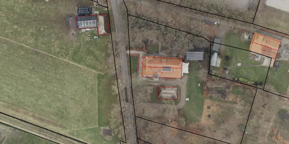 Winterdijk 6 is gelegen op kadastraal perceel ODB01AE24. Deze kadastrale aanduiding is uniek en wordt gebruikt door het Kadaster om eigendomsrechten en andere zakelijke rechten vast te leggen. Het perceel maakt onderdeel uit van de kadastrale gemeente Oldebroek.