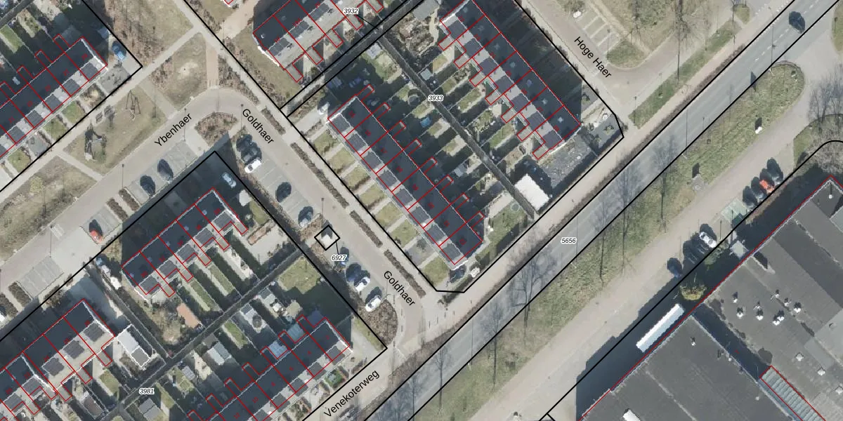 Het perceel waarop Goldhaer 20 staat heeft een oppervlakte van 3403 m². Dit is een zeer groot perceel. De perceeloppervlakte wordt geregistreerd door het Kadaster. Gedetailleerde informatie over de maten van dit perceel kunt u vinden in het rapport Kadastrale kaart met maatvoering van Goldhaer 20.