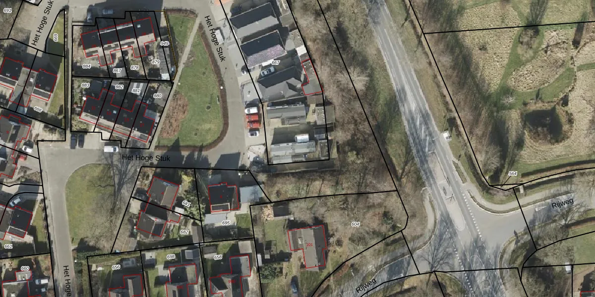 Het perceel waarop Het Hoge Stuk 14 staat heeft een oppervlakte van 1507 m². Dit is een zeer groot perceel. De perceeloppervlakte wordt geregistreerd door het Kadaster. Gedetailleerde informatie over de maten van dit perceel kunt u vinden in het rapport Kadastrale kaart met maatvoering van Het Hoge Stuk 14.