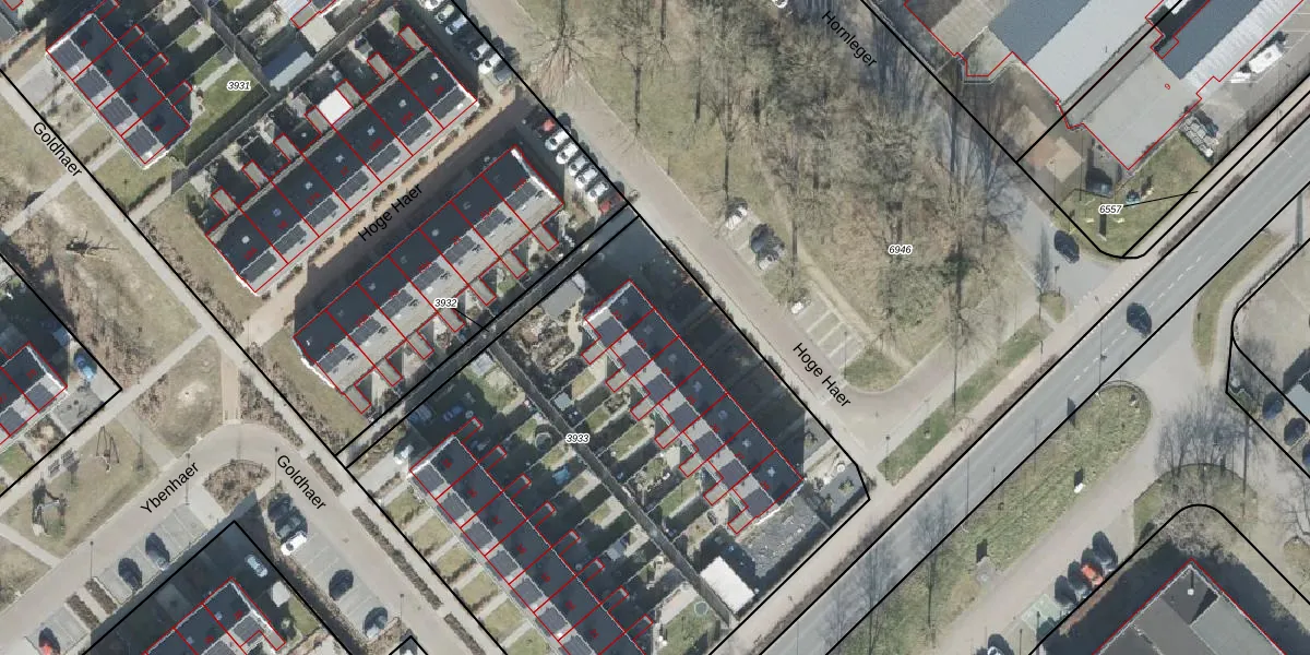 Het perceel waarop Hoge Haer 23 staat heeft een oppervlakte van 3403 m². Dit is een zeer groot perceel. De perceeloppervlakte wordt geregistreerd door het Kadaster. Gedetailleerde informatie over de maten van dit perceel kunt u vinden in het rapport Kadastrale kaart met maatvoering van Hoge Haer 23.