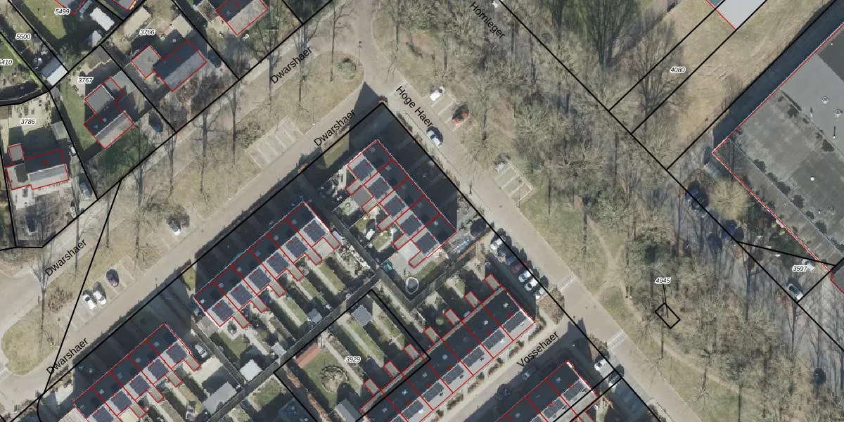 Het perceel waarop Hoge Haer 4 staat heeft een oppervlakte van 8693 m². Dit is een zeer groot perceel. De perceeloppervlakte wordt geregistreerd door het Kadaster. Gedetailleerde informatie over de maten van dit perceel kunt u vinden in het rapport Kadastrale kaart met maatvoering van Hoge Haer 4.
