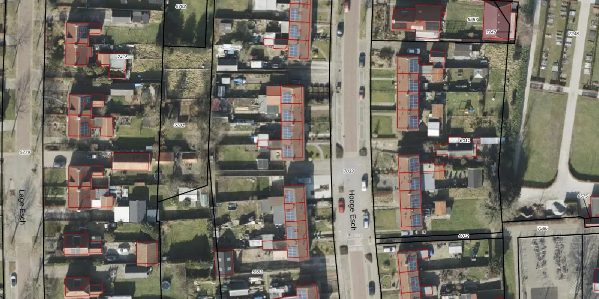 Hooge Esch 19 is gelegen op kadastraal perceel OTW02A5583. Deze kadastrale aanduiding is uniek en wordt gebruikt door het Kadaster om eigendomsrechten en andere zakelijke rechten vast te leggen. Het perceel maakt onderdeel uit van de kadastrale gemeente Oosterwolde.