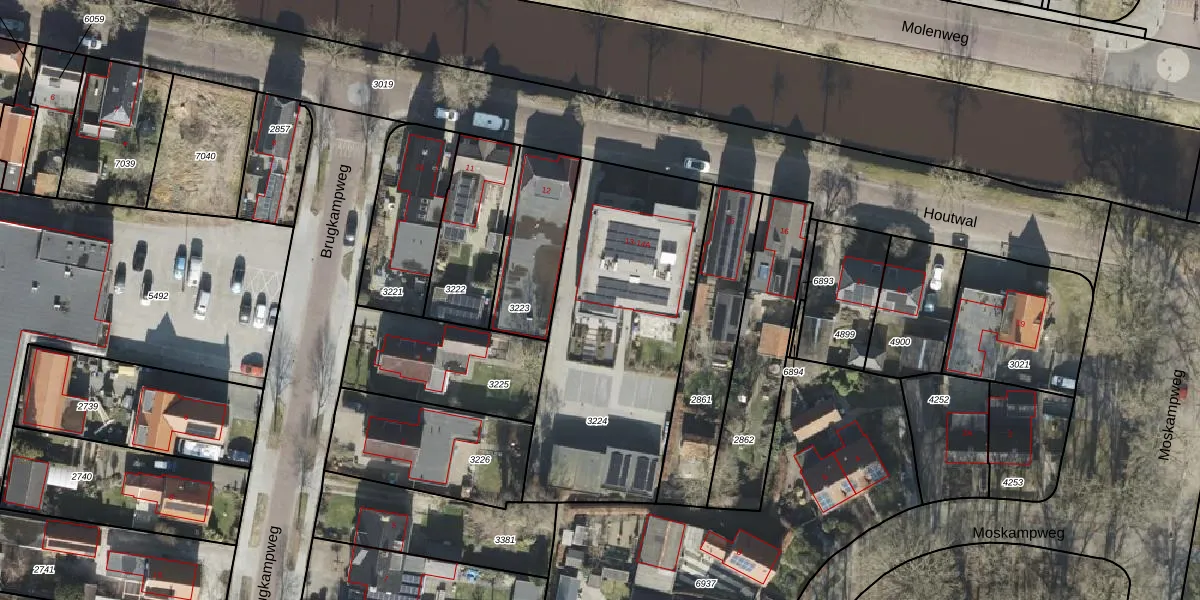 Houtwal 13-A is gelegen op kadastraal perceel OTW02C3224. Deze kadastrale aanduiding is uniek en wordt gebruikt door het Kadaster om eigendomsrechten en andere zakelijke rechten vast te leggen. Het perceel maakt onderdeel uit van de kadastrale gemeente Oosterwolde.