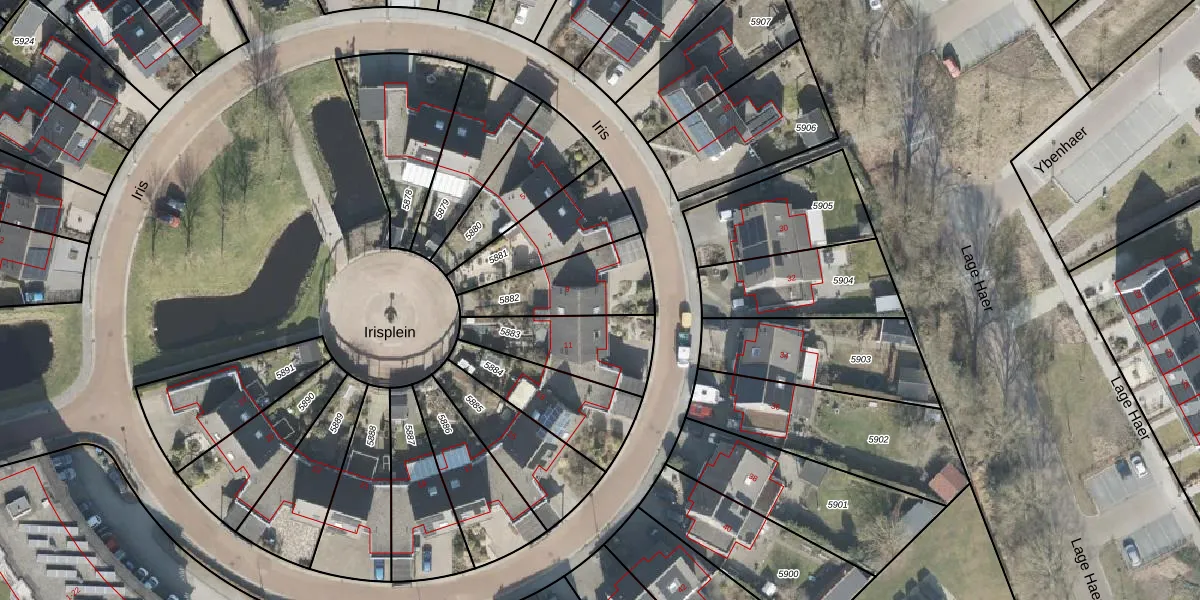 Gebruik de zoekbalk of klik op een perceel voor informatie over de adressen binnen dit perceel.