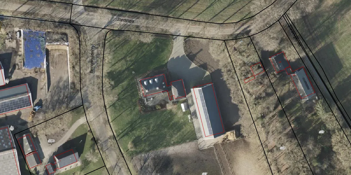 Het perceel waarop Jardinga 2 staat heeft een oppervlakte van 1,1 ha. Dit is een zeer groot perceel. De perceeloppervlakte wordt geregistreerd door het Kadaster. Gedetailleerde informatie over de maten van dit perceel kunt u vinden in het rapport Kadastrale kaart met maatvoering van Jardinga 2.