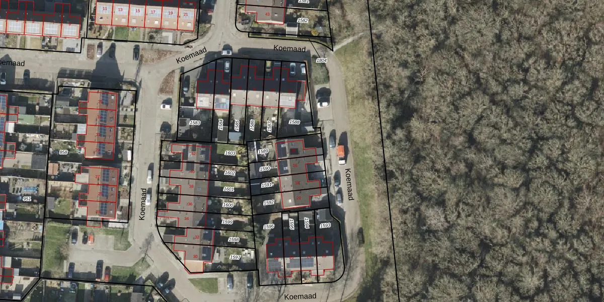 Het perceel waarop Koemaad 14 staat heeft een oppervlakte van 177 m². Dit is een middelgroot perceel. De perceeloppervlakte wordt geregistreerd door het Kadaster. Gedetailleerde informatie over de maten van dit perceel kunt u vinden in het rapport Kadastrale kaart met maatvoering van Koemaad 14.