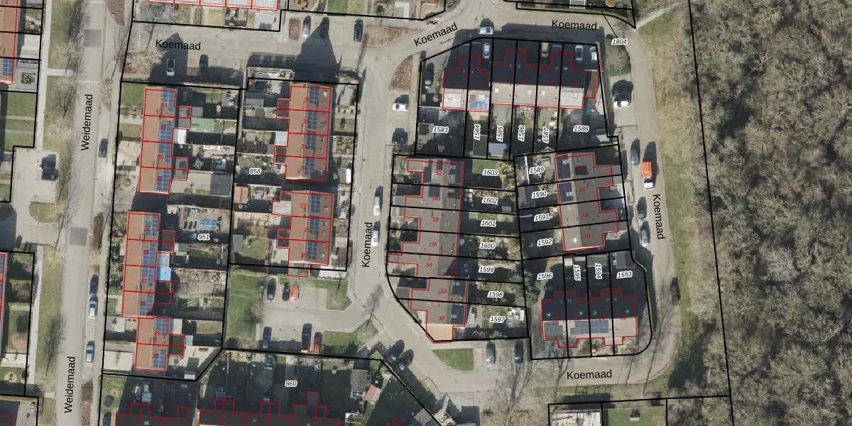 Het perceel waarop Koemaad 38 staat heeft een oppervlakte van 165 m². Dit is een middelgroot perceel. De perceeloppervlakte wordt geregistreerd door het Kadaster. Gedetailleerde informatie over de maten van dit perceel kunt u vinden in het rapport Kadastrale kaart met maatvoering van Koemaad 38.