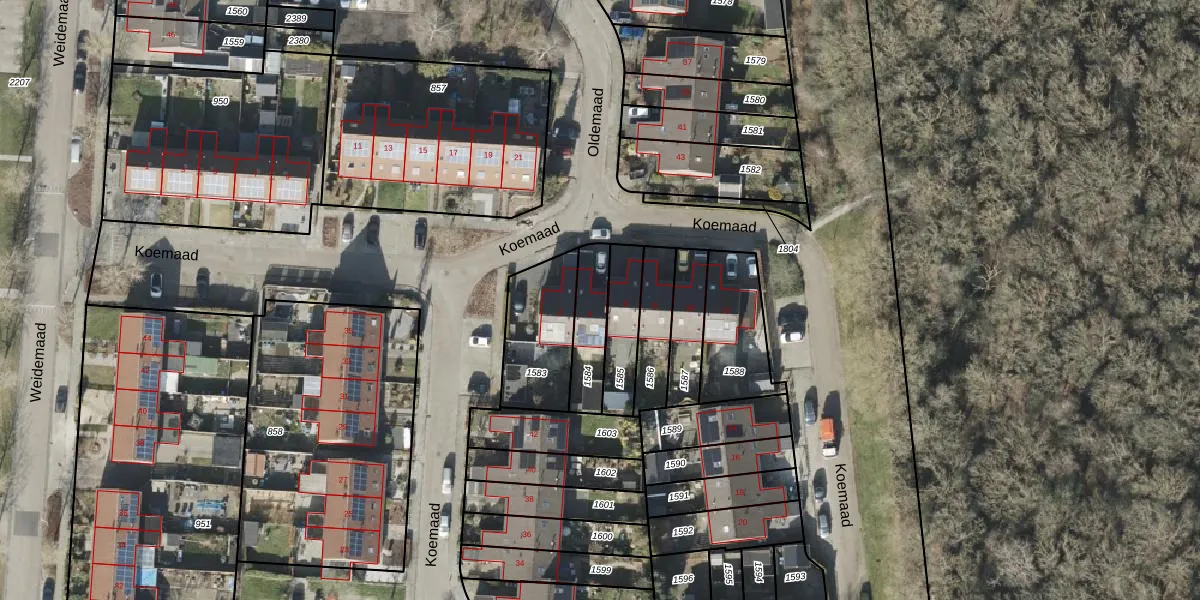 Het perceel waarop Koemaad 4 staat heeft een oppervlakte van 153 m². Dit is een middelgroot perceel. De perceeloppervlakte wordt geregistreerd door het Kadaster. Gedetailleerde informatie over de maten van dit perceel kunt u vinden in het rapport Kadastrale kaart met maatvoering van Koemaad 4.