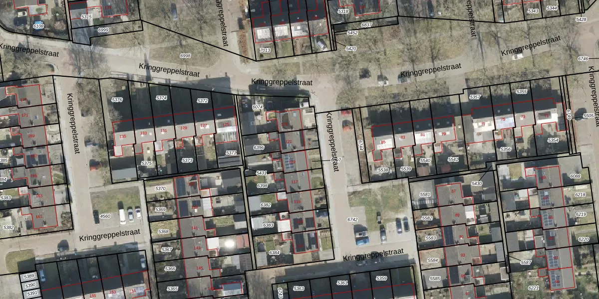 Kringgreppelstraat 121 is gelegen op kadastraal perceel OTW02C6396. Deze kadastrale aanduiding is uniek en wordt gebruikt door het Kadaster om eigendomsrechten en andere zakelijke rechten vast te leggen. Het perceel maakt onderdeel uit van de kadastrale gemeente Oosterwolde.