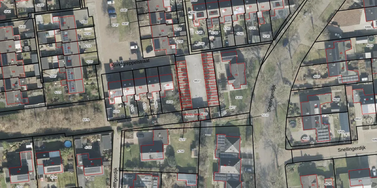 Kringgreppelstraat 49-B007 is gelegen op kadastraal perceel OTW02C4837. Deze kadastrale aanduiding is uniek en wordt gebruikt door het Kadaster om eigendomsrechten en andere zakelijke rechten vast te leggen. Het perceel maakt onderdeel uit van de kadastrale gemeente Oosterwolde.
