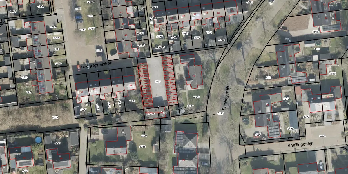 Kringgreppelstraat 49-B013 is gelegen op kadastraal perceel OTW02C4837. Deze kadastrale aanduiding is uniek en wordt gebruikt door het Kadaster om eigendomsrechten en andere zakelijke rechten vast te leggen. Het perceel maakt onderdeel uit van de kadastrale gemeente Oosterwolde.