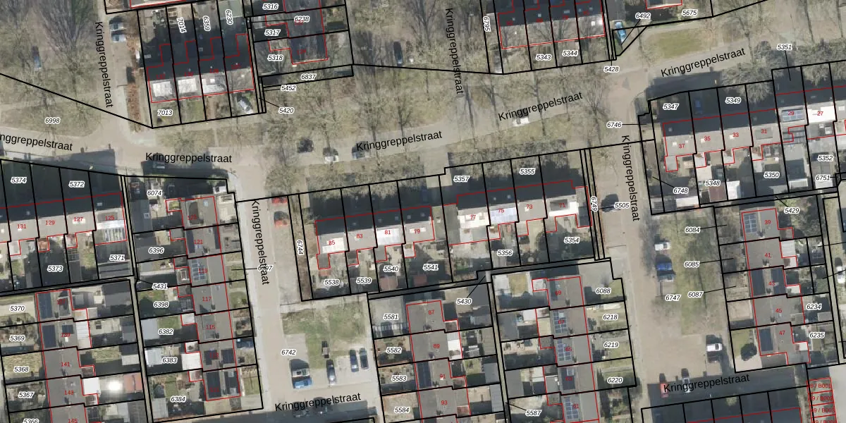 Gebruik de zoekbalk of klik op een perceel voor informatie over de adressen binnen dit perceel.